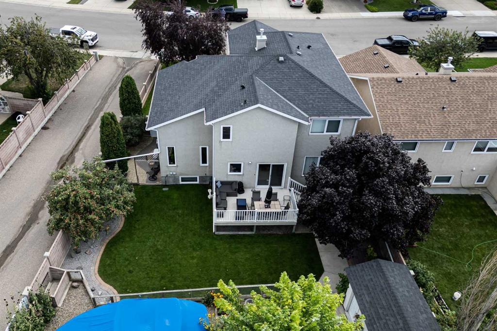 Striking Executive Home with Premium Upgrades & Prime Location! Welcome to this stunning custom-built executive home—bursting with curb appeal and high-end extras throughout! From the moment you arrive, you'll be captivated by the vaulted ceilings, grand windows, and warm gas fireplace that create an inviting atmosphere. Designed for both style and function, this home features steel beams, joists, and studs, ensuring superior durability. Recent upgrades bring modern flooring, fresh paint, and sleek white/grey cabinetry paired with stainless steel appliances. The fully developed basement includes heated floors in the bathroom, a large family room, a good sized bedroom and a storage room too! The primary suite is a true retreat, boasting double-door entry, a walk-in closet, dual sinks, and a jetted tub for ultimate relaxation. Convenient 2nd-floor laundry is located just outside the bedrooms for easy access. Step outside to your professionally landscaped yard, enclosed by a cinder block fence for privacy. Enjoy the Dura Deck, paving stone patio, and oversized RV parking pad—with laneway access! The extra-large heated double garage is a real bonus, complete with workbenches and shelving for all your projects. Situated just one block from 73-acre Legacy Park, you'll have access to a lake, 6 km of pathways, a skate park, tennis and basketball courts, a spray park, and picnic shelters. Plus, you're right by Cougar Park for even more outdoor fun! This home truly has it all—executive elegance, premium upgrades, and an unbeatable location. Don't miss your chance to make it yours! Book your showing today!