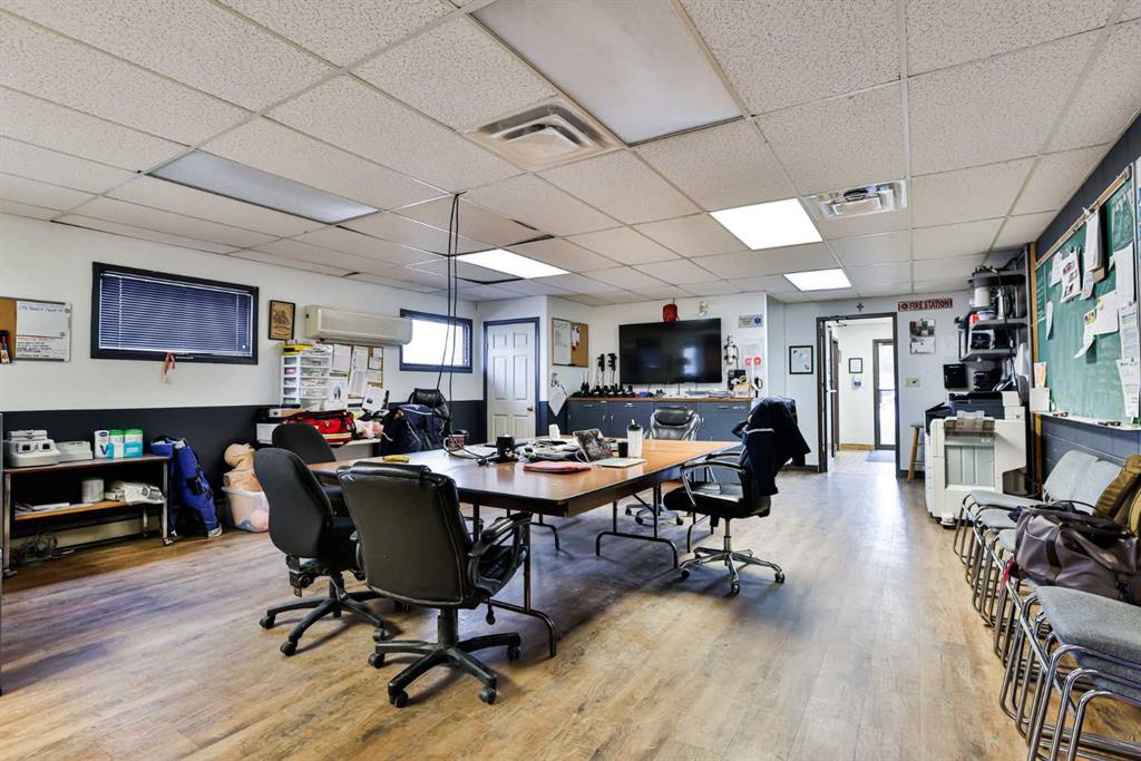 Priced under appraised value is this fantastic, rare commercial / multi-family residential opportunity in the Pincher Creek! With strong visibility and flexible use potential, the building and property has been the site of the town fire hall and emergency services operations for many years. The property currently features approximately 5,874 sq. ft. on the main floor with a finished reception area, open lounge and kitchen, and two five-piece washrooms. The 1,420 sq. ft. mezzanine includes three offices, a boardroom, and two additional rooms, with separate exterior stair access at the rear. The building is equipped with seven 12' x 14' overhead doors and a hot water boiler system providing baseboard and forced air heat to office and shop areas. Situated on a beautiful parcel just over 20,000 sq. ft right on the Pincher Creek, the site allows for ample parking and circulation. Ideally positioned in Pincher Creek at the junction of Highway 6 and Highway 507, approximately 97 km west of Lethbridge, this property presents an excellent opportunity for a variety of commercial or multi family residential re-development options.