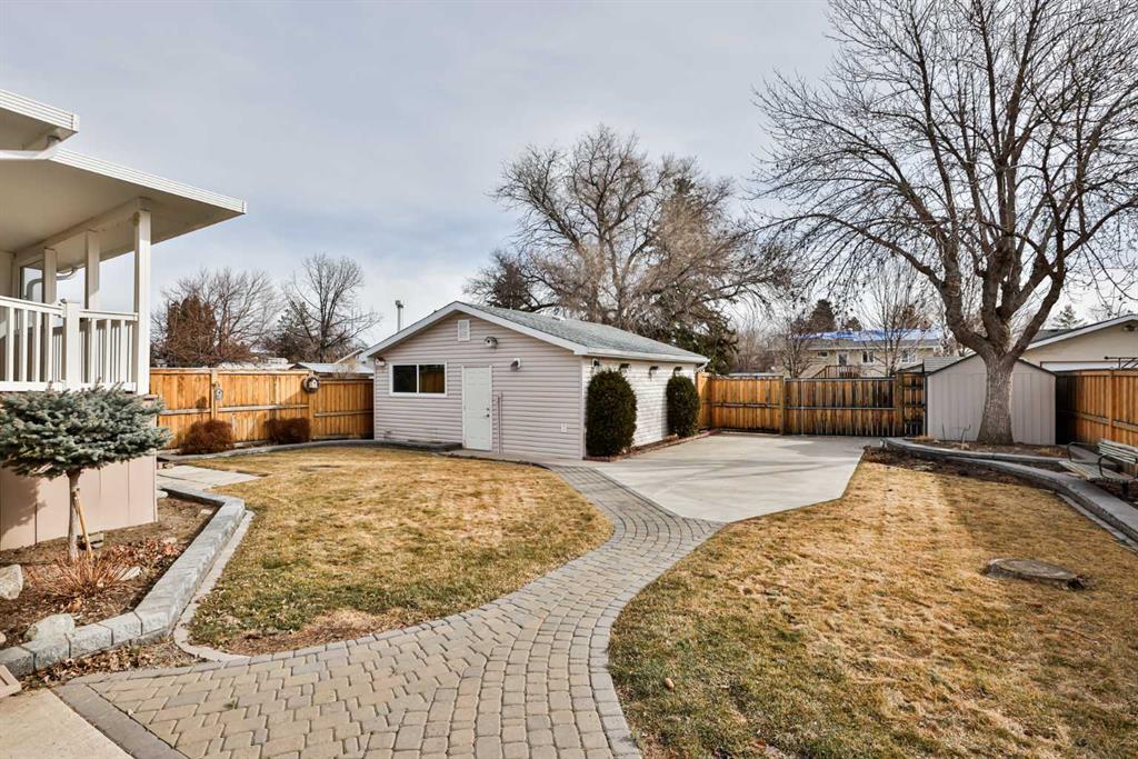Is this the one you've been waiting for? Opportunities like this are few and far between. A rare to market one owner home, proudly maintained for 50 years, located on a quiet crescent just steps from Vista Park and within walking distance to Sobeys, Circle K/Esso, Original Joe’s, Pizza Hut, and the liquor store. This is the kind of location buyers hold onto for decades. This solid, well-loved home offers incredible functionality inside and out. You will appreciate the heated double garage, front driveway, and additional RV parking at the rear, a rare combination that provides outstanding flexibility. The backyard is a private retreat with a covered deck, lush lawn, underground sprinklers, and a beautiful stone patio with pathway. It is a space designed to be enjoyed. Inside, natural light pours in through large bay windows, creating a warm and inviting atmosphere. The main floor currently features two bedrooms but can easily be converted back to three. The kitchen was updated just a few years ago with raised maple cabinetry and an upgraded appliance package, blending timeless style with modern convenience. Permanent exterior lighting complete with a remote adds a unique and practical touch. The fully developed basement offers even more living space with a cozy brick faced fireplace, a spacious bedroom with room to add another, a full bathroom, generous storage, and cold storage complete with a built in safe. Recent upgrades include the furnace and water heater, and air conditioning ensures comfort during the summer months. This is a well cared for, mechanically updated home in a mature neighbourhood with parks and amenities just around the corner. Location, parking, condition, and pride of ownership all come together here.