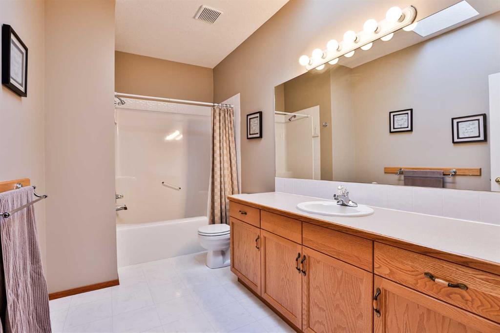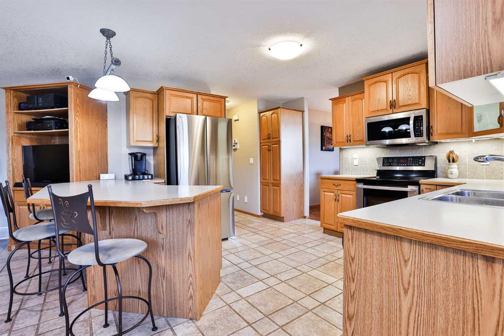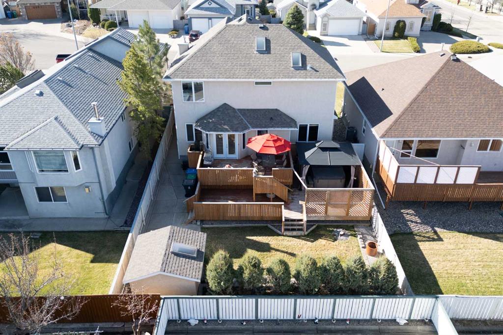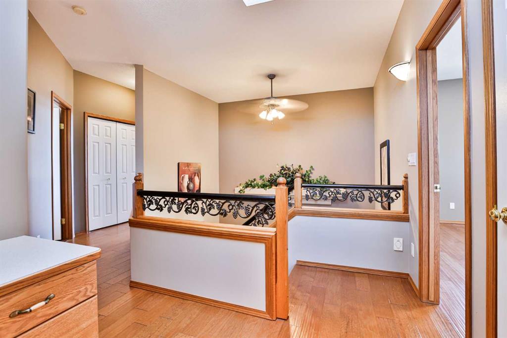 Imagine arriving home to your executive residence in one of Fairmont’s most prestigious cul de sacs. From the moment you pull up, the striking stone and stucco exterior creates exceptional street appeal and sets the tone for the quality found throughout. Step inside to a spacious, light filled foyer highlighted by a feature staircase with integrated lighting, an architectural statement that immediately elevates the space. Soaring 9 foot ceilings throughout the main level enhance the sense of openness, while skylights invite even more natural light into the home. The impressive entrance is only a preview of what awaits in this distinctive property, thoughtfully designed for refined yet comfortable living. At the heart of the home is an expansive oak kitchen offering generous workspace and a large breakfast bar that flows seamlessly into the dining and living areas, allowing you to tailor the layout to your lifestyle. A formal sunken living room with a stone faced fireplace provides an elegant setting for entertaining, while the separate formal dining room is ideal for hosting special occasions. Main floor laundry and a two piece powder room add everyday convenience. Upstairs, the primary suite is a true retreat, featuring a spacious closet and a luxurious ensuite complete with a jetted tub where you can unwind while taking in stunning mountain views. An open office space offers flexibility for work or study, and two additional generously sized bedrooms, each with built in makeup or homework desks, share a well appointed four piece bathroom. The fully developed lower level expands your living space even further with two additional bedrooms, a large family room, a craft room, cold storage, another built in desk area, and an additional full bathroom. With over 2,200 square feet above grade, this home delivers both scale and versatility for growing families or those who love to entertain. Additional features include central vacuum with a convenient Kicksweep feature in the kitchen, underground sprinklers, a multi level deck with pergola and hot tub, and a security system for added peace of mind. Move in ready and situated in a location you will truly love, this exceptional Fairmont home offers an outstanding opportunity to enjoy upscale living at its finest.